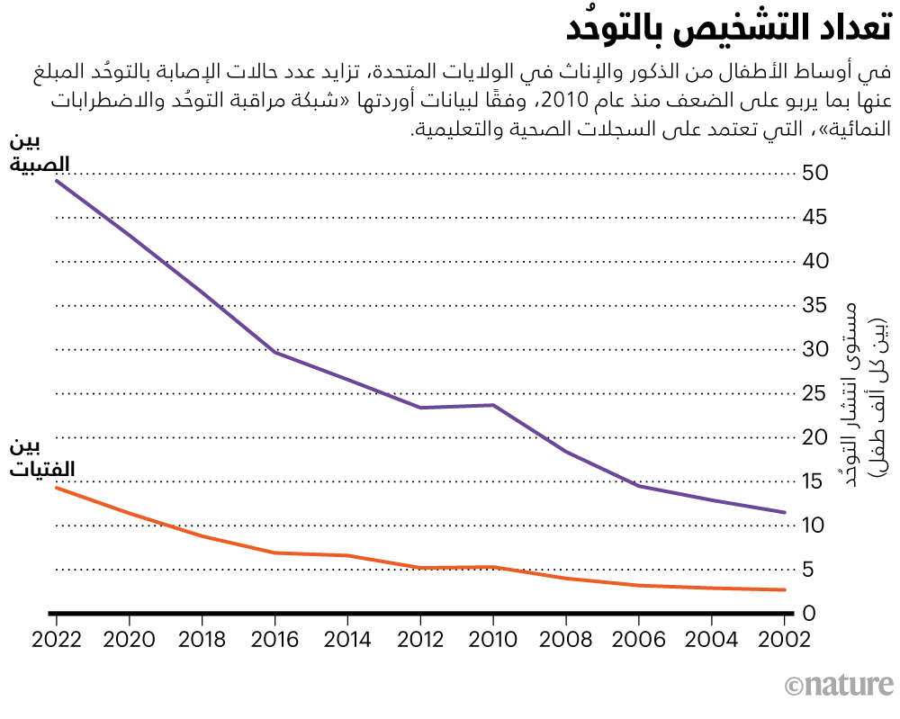 كذلك بات الأطفال المصابون بالمرض يُشخصون به في عمر أصغر. وتزايد عدد الساعين إلى الحصول على تشخيص، من البالغين ومن الفتيات والنساء اللاتي طالما أُهملت إصابتهن بالتوحُد في الماضي.