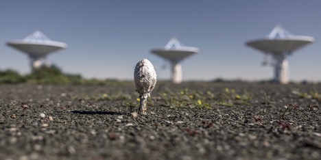 ذُهلت من التبايُن اللوني المدهش في هذه الصورة، التي يظهر فيها فِطر وحيد، وقد لاحت في خلفيته ثلاثة صروح هي هوائيات لتلسكوب «كات-7» KAT-7 الراديوي الذي خرج عن الخدمة بمحمية «ميركات» الوطنية في دولة جنوب إفريقيا. تبرز التشكيلة في هذه الصورة أوجه التشابه والاختلاف بين عناصرها، وتشهد حقًا على قوة ملاحظة ماركو لونجاري مصور وكالة فرانس برِس.