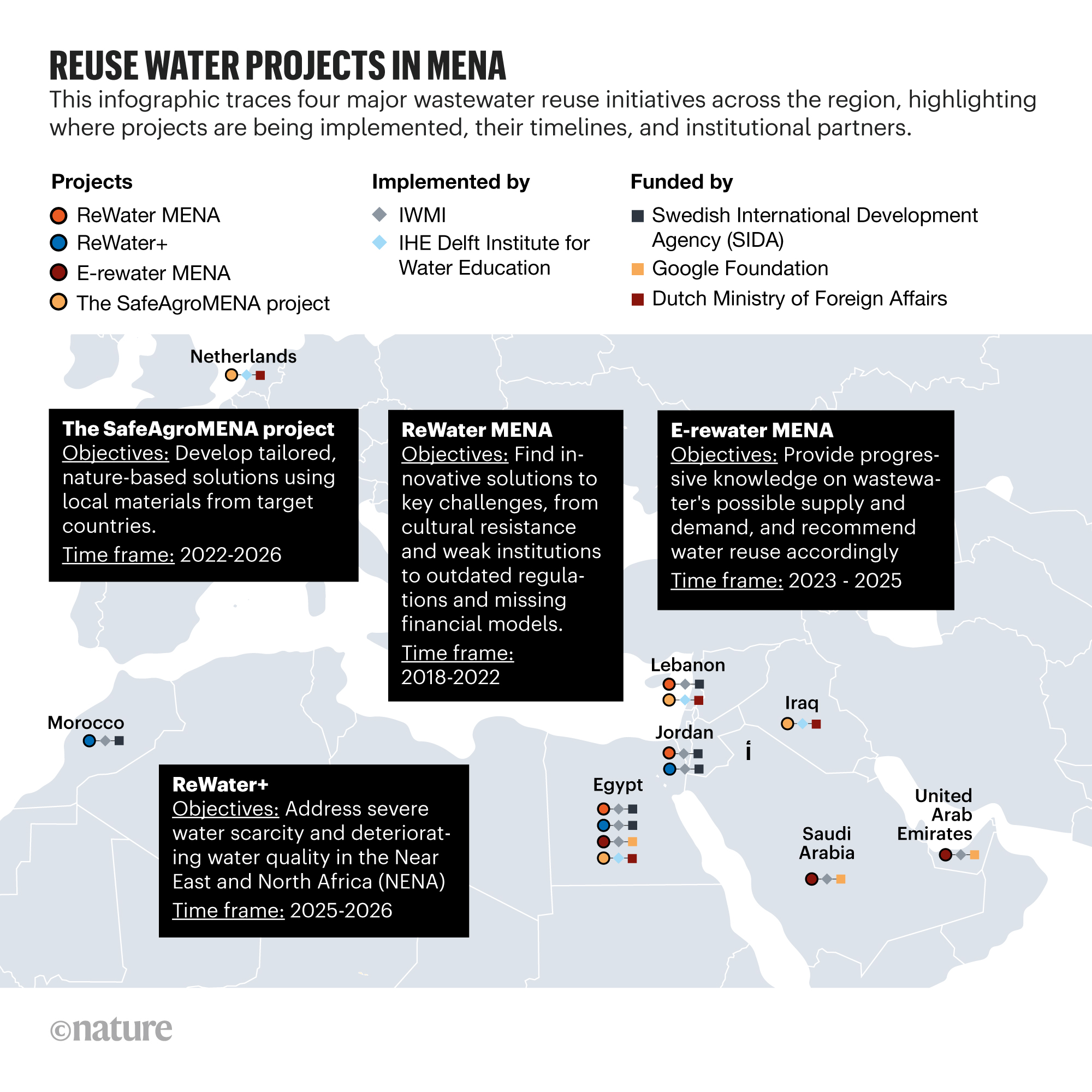 Other projects highlight the social dimension of water reuse, like the SafeAgroMENA project by IHE Delft, running in Egypt, Lebanon, Iraq, and the Netherlands. The project employs an interdisciplinary approach to provide safe water for agricultural use, helping small-scale farmers reuse treated wastewater safely, according to Hadeel Hosney, the project leader.
